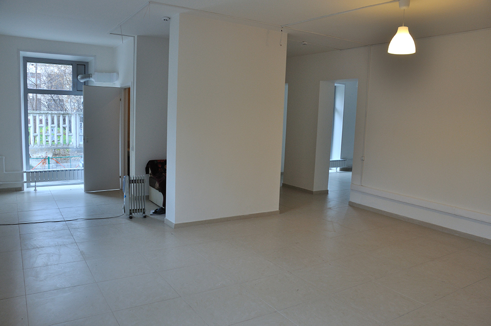 Первая линия домов. 1-й этаж 8-ти этажного блочного дома, высота потолков 3 м, линия МГТС, ж/б перекрытия, отдельный вход на ул. Куусинена, проходное и проездное место, большое пространство для размещения рекламы и вывески.